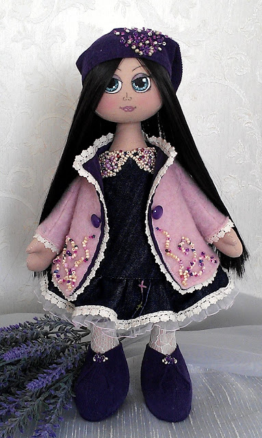 Муж, когда увидел законченную работу, сделал вывод, что jeune fille собралась в клуб потусить. Тогда кукла была ещё без глаз, очень хотелось нарисовать глазки-точечки, но взяла я в руку кисть и вуаля... лицо нарисовалось само. Видно, моя мечта о куколке с глазами, как у Cьюзен Вулкот так и останется мечтой...